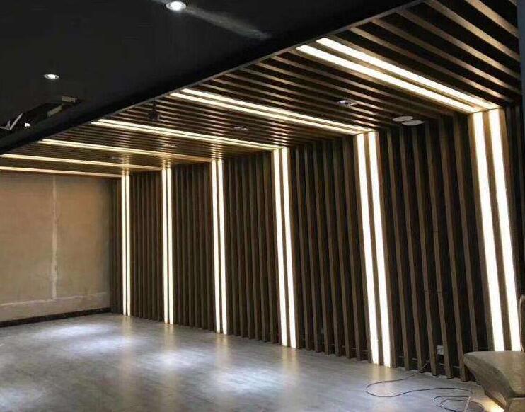 安装不同的铝方通是都可以选择不同的高度和间距,可一高一低,一疏一密,加上合理的颜色搭配,令设计千变万化,能够设计出不同的装饰效果。同时,由于铝方通是通透式的,可以把灯具,空调系统,消防设备置于天花板内,以到达整体一致的的完美视觉效果。