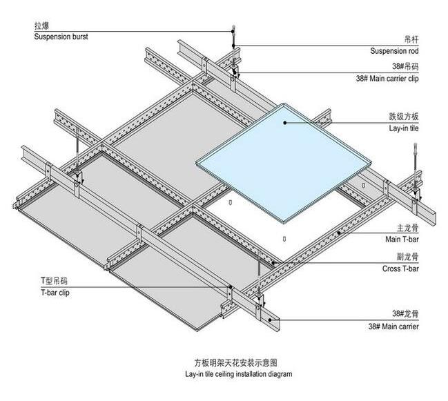 结构为龙骨纵横交错平铺式结构,只要将龙骨装成框架形式吊装好,把板平铺上去即可。