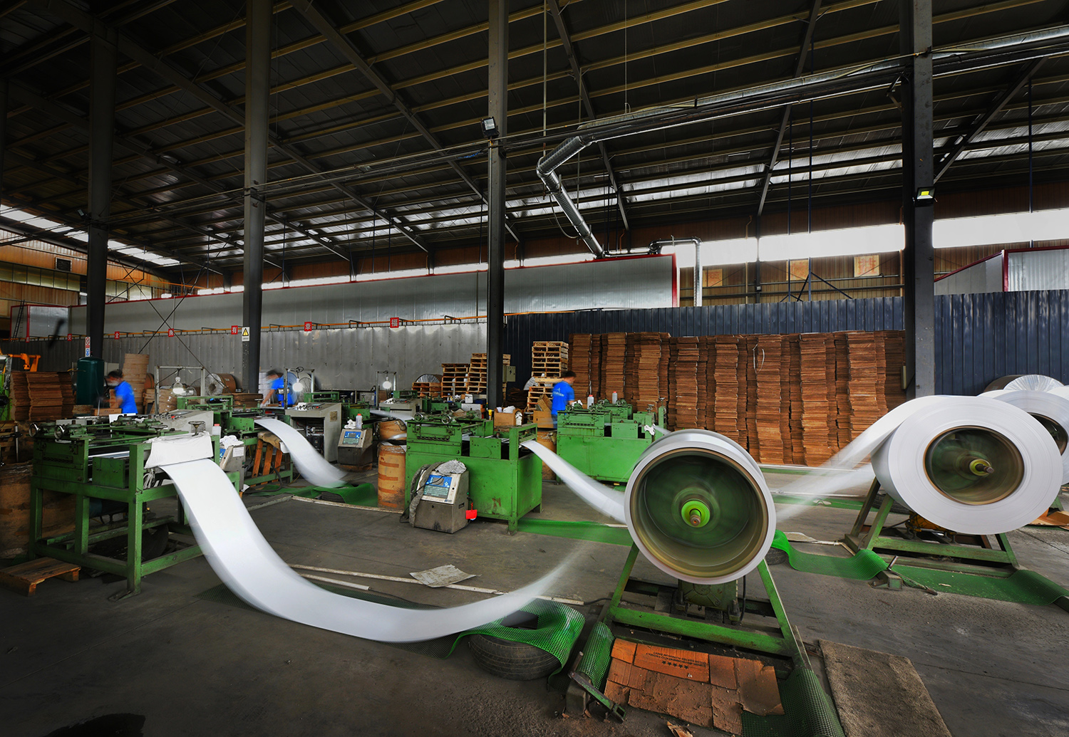 5.配置方通、条扣、龙骨、工程板等专业生产设备,实现从铝卷表面复杂工艺处理到覆膜、分条、剪板、折弯、切片、成型、精雕、磨花等全套产能,是区域内技术与产能领先企业。